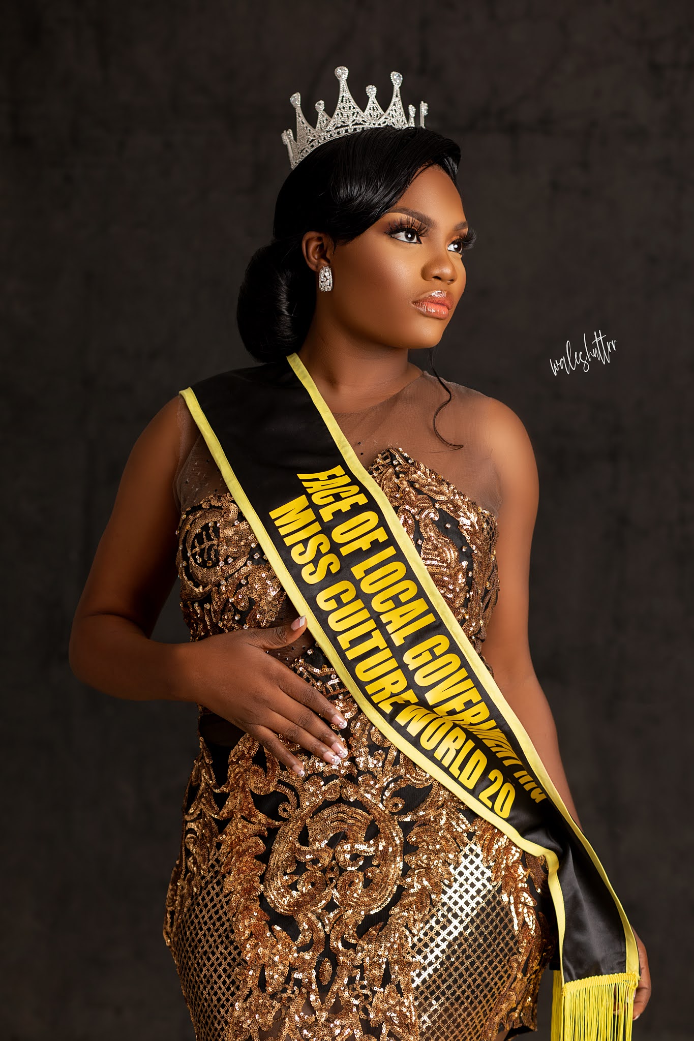 Queen Folarin Oluwayemisi, who emerged as the Face of Local Government Nigeria Miss Culture 2020, an online beauty pageant which had Absolute Hearts Media as its official media partner has released her first-ever photoshoot.The photoshoot which portray her beauty and elegance was shot by Ayanlowo Tosin Olamiwale, a luxury professional Photographer and a Creative artist, CEO and creative director of Waleshuttrr Gallery.